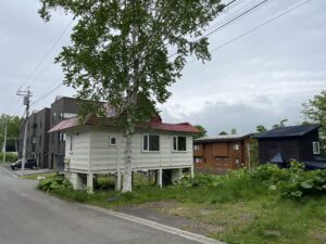 コテージ88は、ヒラフビレッジの2ブロックの合計約214平方メートルの土地に建ち、再開発やリフォームの可能性を秘めています。
