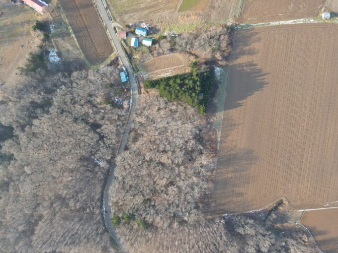周囲には広々とした畑が広がり、街の喧騒から離れた静かな環境が広がっています。
